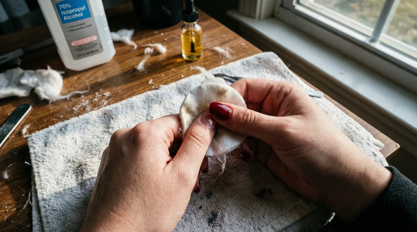 To understand why standard isopropyl alcohol works so brilliantly, we must examine the curing process under the microscope. When UV or LED light hits your gel polish, it triggers a rapid reaction called photopolymerization. However, the oxygen in the ambient air prevents the very top layer of the gel from fully hardening. This leaves behind unreacted oligomers and monomers, creating that dreaded sticky film known as the oxygen inhibition layer. Cosmetic brands bottle basic solvents, add synthetic fragrances, and market them as essential cleansers. In reality, a standard bottle of rubbing alcohol contains the exact chemical profile required to safely break down these unreacted compounds without disrupting the fully cured polymer network beneath it. If you have ever experienced a ruined topcoat, it usually comes down to technique rather than the liquid itself.